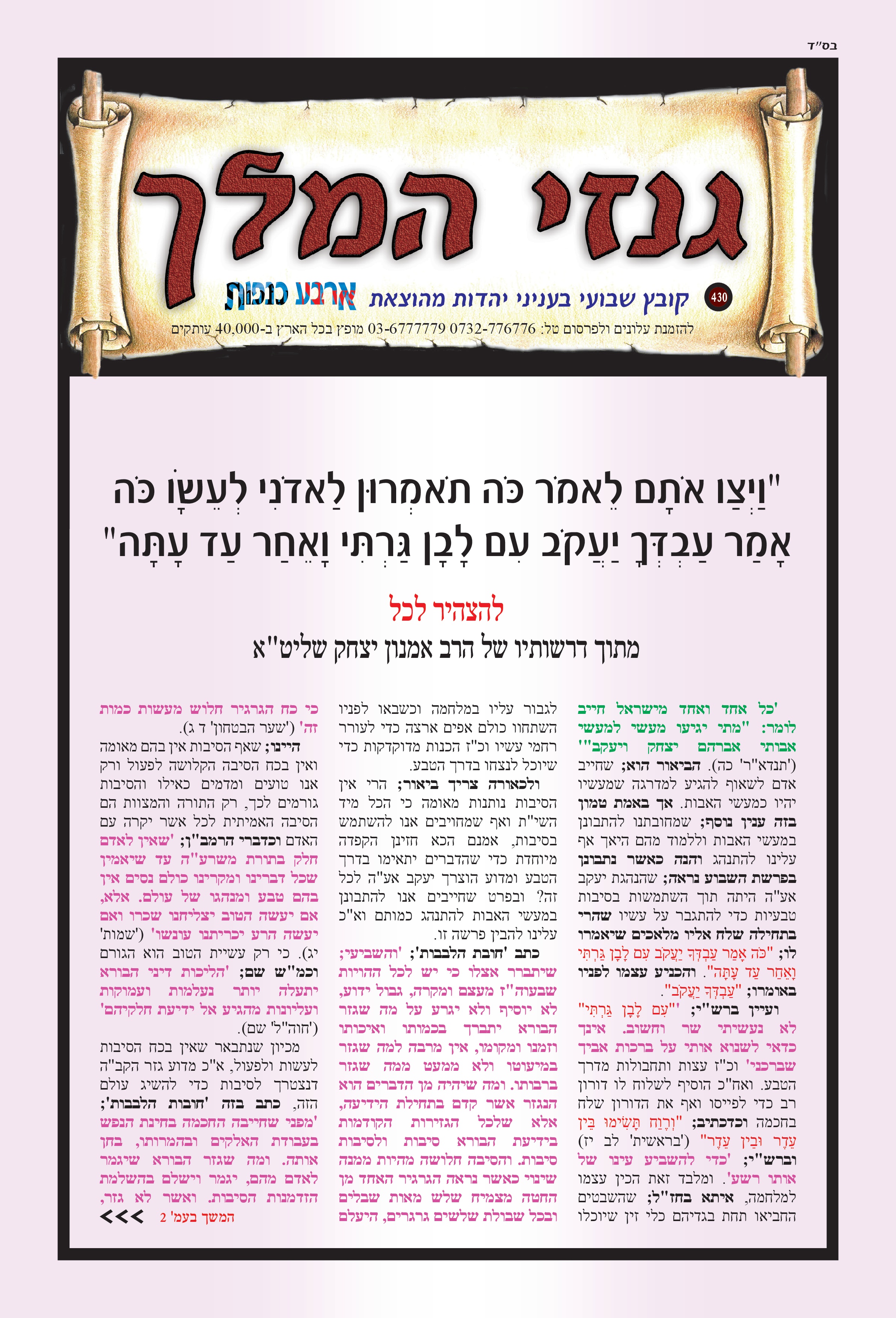 "וַיְצַו אֹתָם לֵאמֹר כֹּה תֹאמְרוּן לַאדֹנִי לְעֵשָׂו כֹּה אָמַר עַבְדְּךָ יַעֲקֹב עִם לָבָן גַּרְתִּי וָאֵחַר עַד עָתָּה" להצהיר לכל