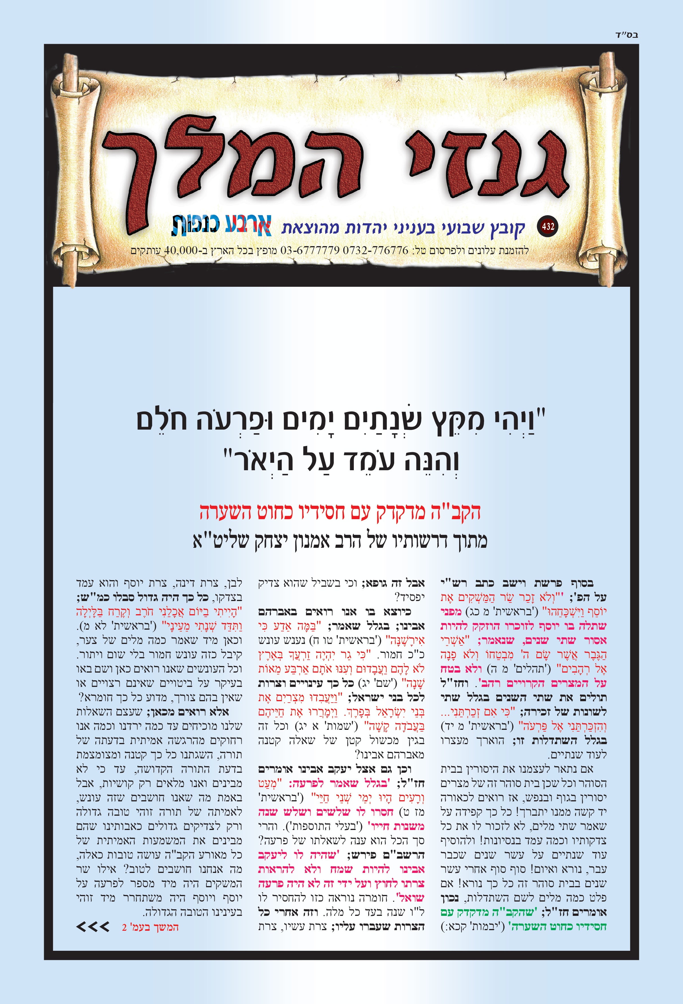 "וַיְהִי מִקֵּץ שְׁנָתַיִם יָמִים וּפַרְעֹה חֹלֵם וְהִנֵּה עֹמֵד עַל הַיְאֹר" הקב"ה מדקדק עם חסידיו כחוט השערה