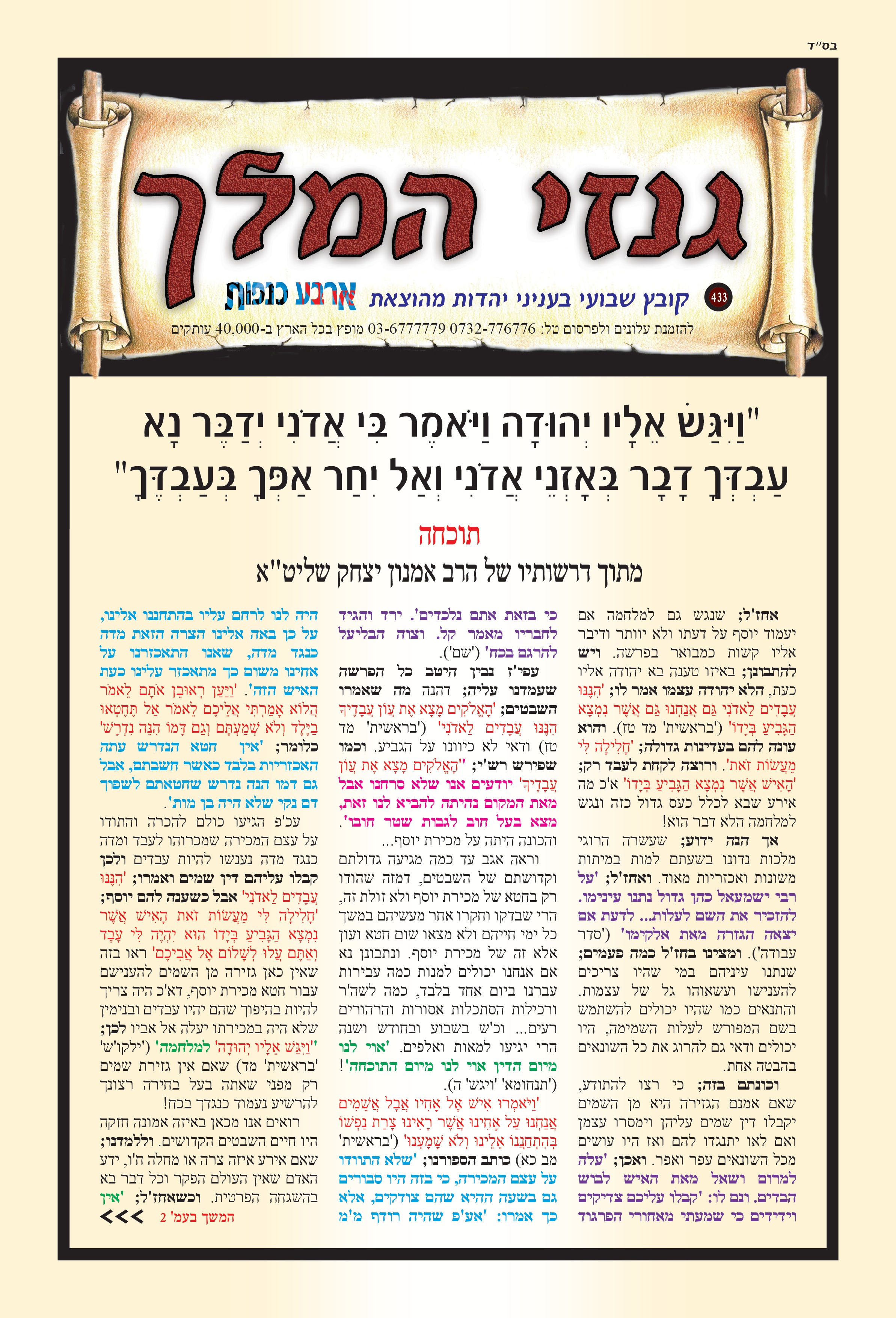 "וַיִּגַּשׁ אֵלָיו יְהוּדָה וַיֹּאמֶר בִּי אֲדֹנִי יְדַבֶּר נָא עַבְדְּךָ דָבָר בְּאָזְנֵי אֲדֹנִי וְאַל יִחַר אַפְּךָ בְּעַבְדֶּךָ" תוכחה