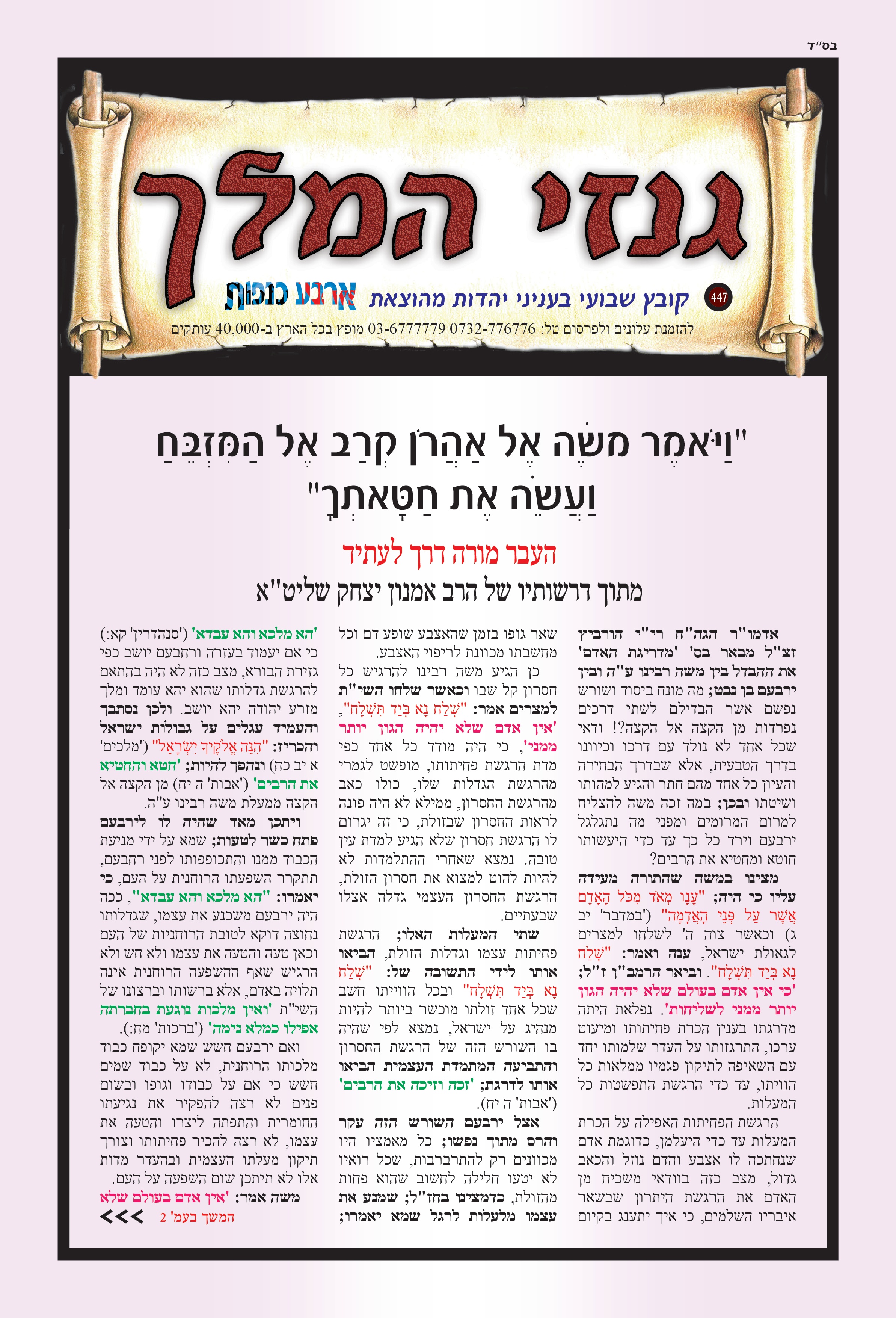 "וַיֹּאמֶר מֹשֶׁה אֶל אַהֲרֹן קְרַב אֶל הַמִּזְבֵּחַ וַעֲשֵׂה אֶת חַטָּאתְךָ" העבר מורה דרך לעתיד