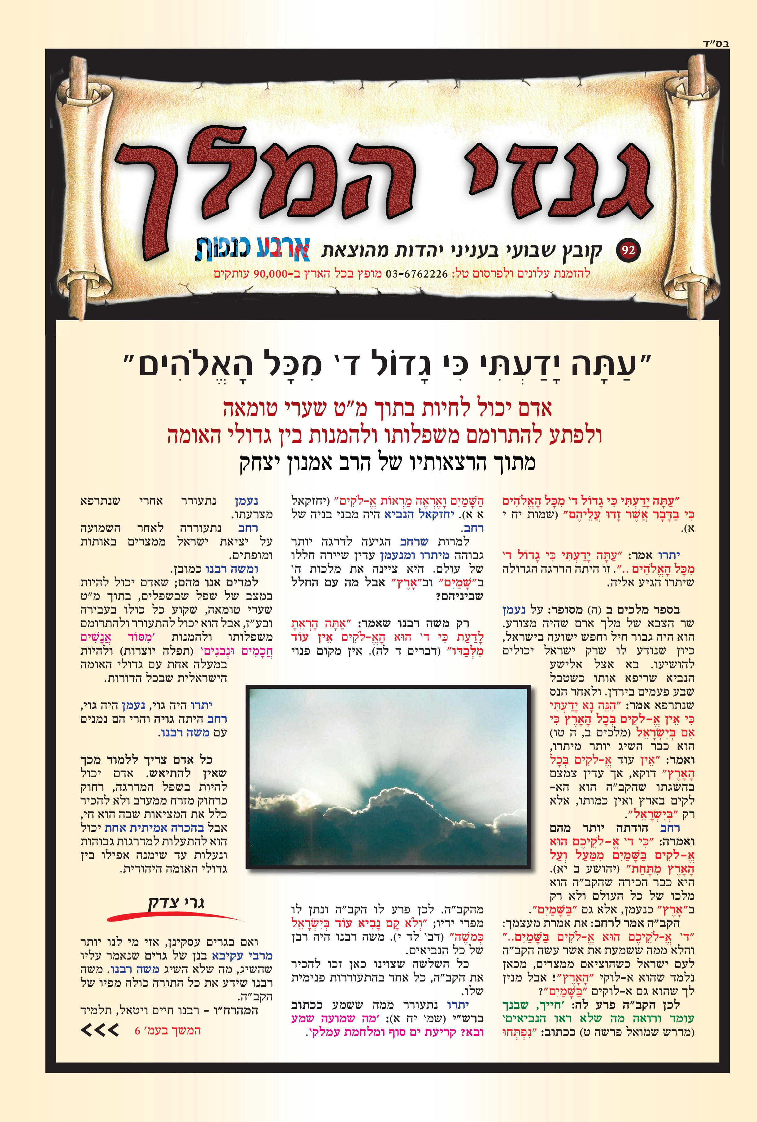 "עתה ידעתי כי גדול ה' מכל הא-לקים אדם יכול לחיות בתוך מ"ט שערי טומאה ולפתע להתרומם משפלותו ולהמנות בין גדולי האומה