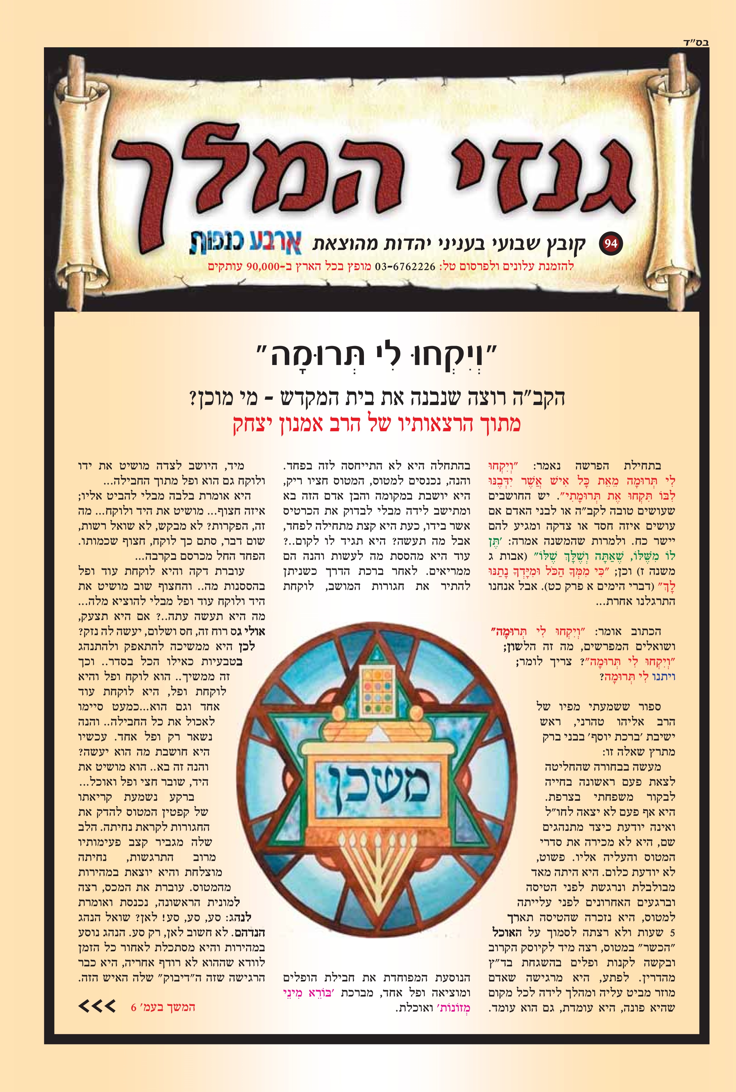 "ויקחו לי תרומה" הקב"ה רוצה שנבנה את בית המקדש - מי מוכן?