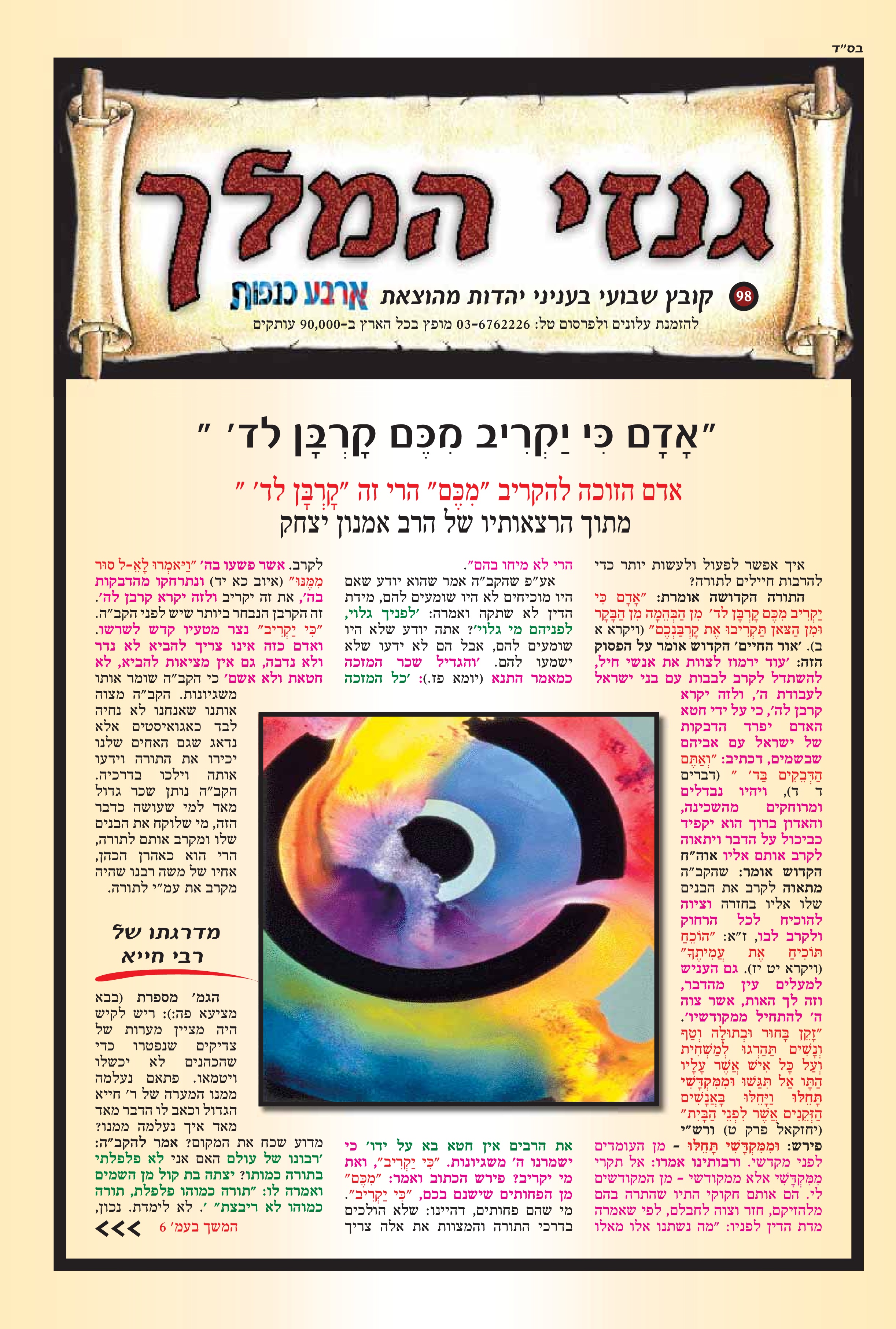 פרשת שבוע - ויקרא "אדם כי יקריב מכם קרבן לד'' " הקרבן הוא מידה כנגד מידה