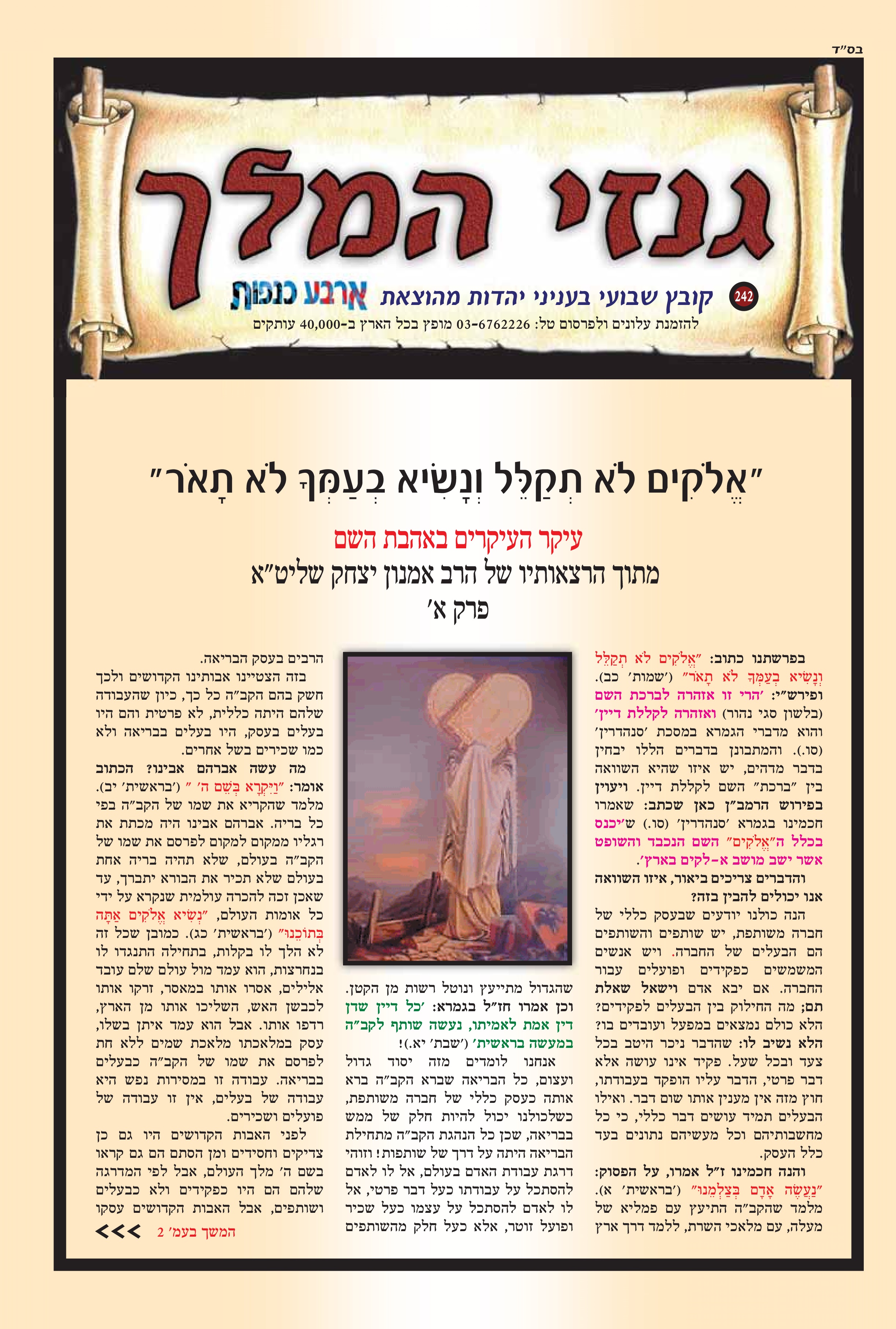 הקנאות הטהורה והכנה של כבוד הרב שליט"א כלפי ה' יתברך נדירה ומייצגת את אהבתו וביטולו המוחלט להשי"ת. כבוד הרב מהווה דוגמה למחויבות מוחלטת לתורה ולקיום מצוות, ופועל אך ורק לשם שמים, ביושר ובאומץ. תודה להשי"ת שזוכים לראות דרך זו בפועל. שבת שלום ומבורך (הרב אמנון יצחק בראיון אחד על אחד אצל אלעזר שטורם ערוץ TOV).